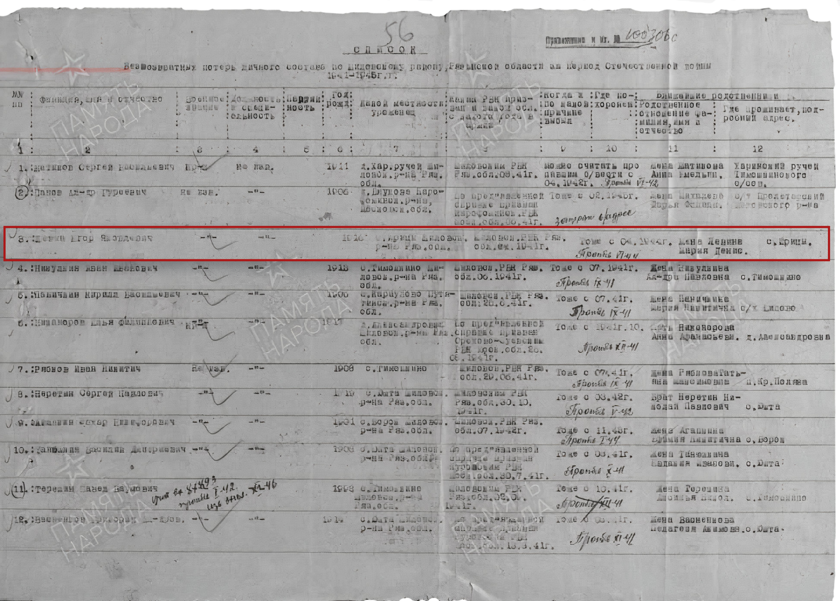 Из военного архива МО необходимо получить необходимые данные и выстроить личную военную историю этого Воина. Первичная информация о судьбах таких солдатских вдов находится на сайте podvignaroda.ru, а также в картотеках военкоматов Республик и областей.